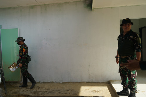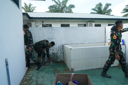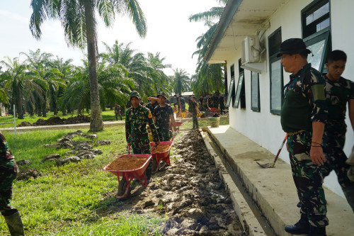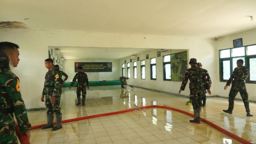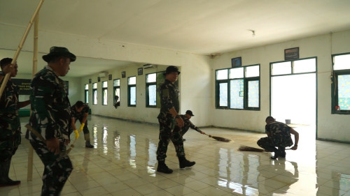 Wadanjen Akademi TNI memberikan arahan kepada Taruna dan Antap melaksanakan pembersihan di Barak Mayonif 111/KB