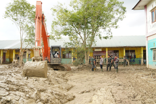 Danjen Akademi TNI melaksanakan Peninjauan sarana SMP Negeri 1 Kuala Simpang, Aceh Tamiang dampak dari pasca banjir