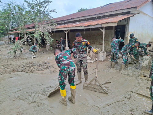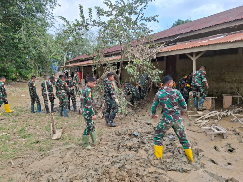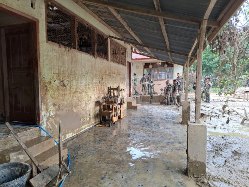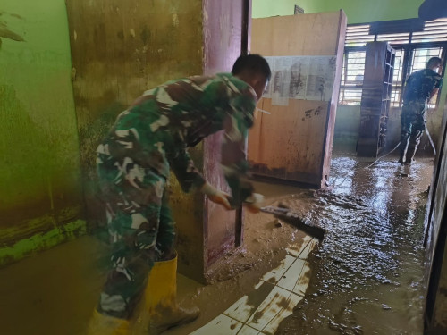 pembersihan difokuskan pada penghilangan lumpur yang menutupi halaman sekolah,