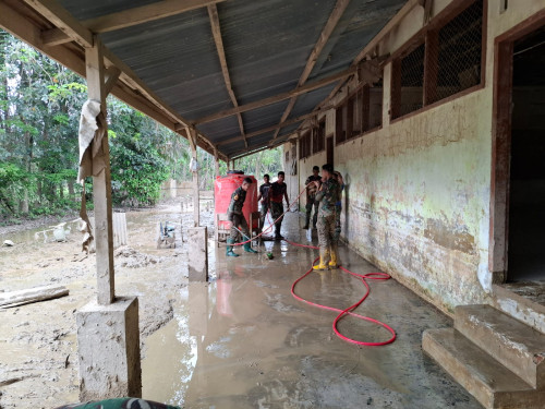 teras, serta ruangan-ruangan kelas yang terdampak banjir. Upaya tersebut