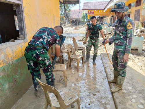 Taruna Akademi TNI melaksanakan pembersihan di SD Negeri 1 Rantau Pauh