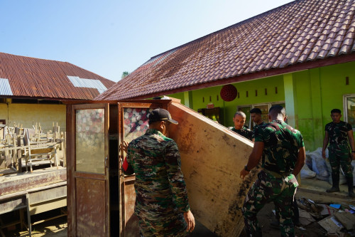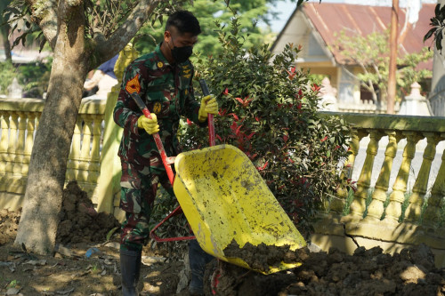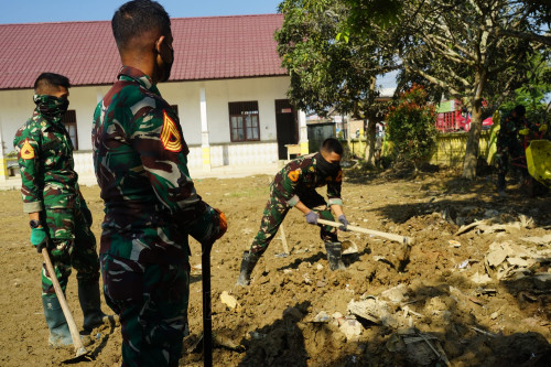 Taruna melaksanakan pembersihan di SD Negeri Tualang Cut
