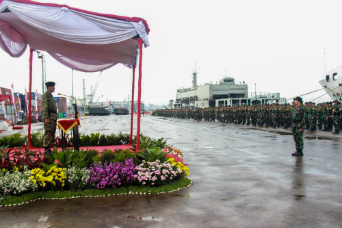 Dirdik Akademi TNI Pimpin Apel Pembentukan Satgastar Latsitarda Nusantara Ke 45 di Dermaga Tanjung Emas Semarang