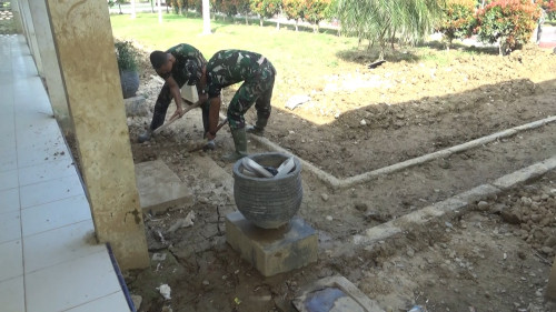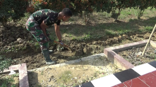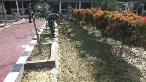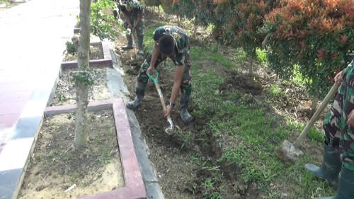 Taruna Akademi TNI pembersihan taman belakang Mayonif 111/KB