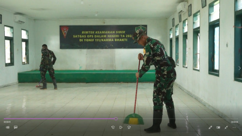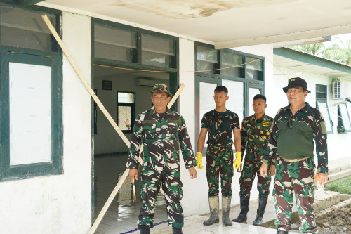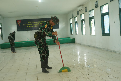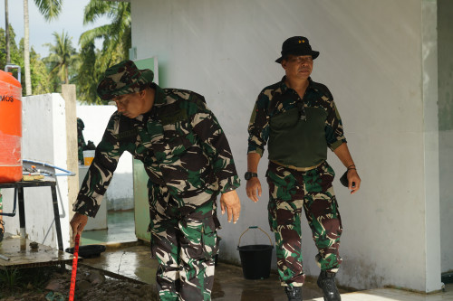 Wadanjen Akademi TNI memberikan arahan kepada Taruna dan Antap melaksanakan pembersihan di Barak Mayonif 111/KB