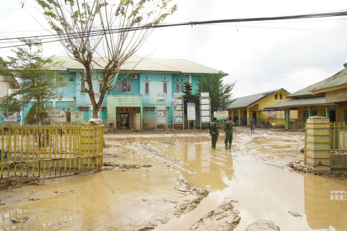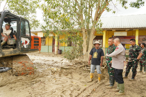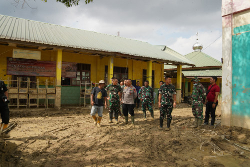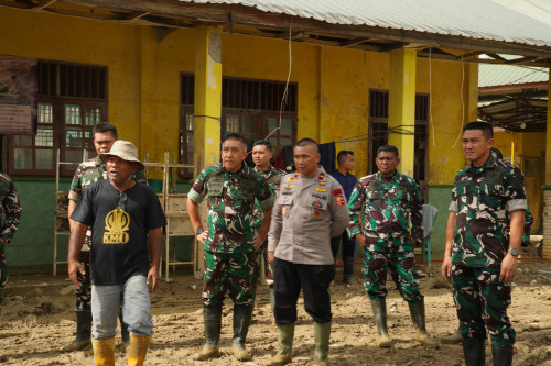 Danjen Akademi TNI melaksanakan Peninjauan sarana SMP Negeri 1 Kuala Simpang, Aceh Tamiang dampak dari pasca banjir