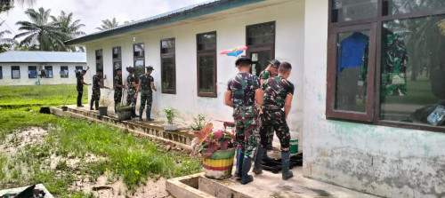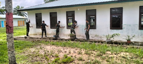 Perwakilan Taruna Akademi TNI yang tergabung dalam Satuan Tugas Latsitarda Nusantara Ke 46 yang telah tiba di Markas Yonif 111/Karma Bhakti melaksanakan kegiatan pengecatan barak di Mayonif 111/KB. Kegiatan ini dilakukan sebagai bagian dari persiapan akomodasi yang akan digunakan selama pelaksanaan Latsitarda Nusantara ke-46.