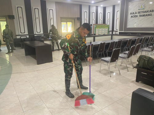 Pembersihan dan penataan ruangan dilaksanakan guna mendukung pembentukan posko terpadu yang akan difungsikan sebagai pusat koordinasi percepatan penanganan dan pemulihan wilayah Kabupaten Aceh Tamiang yang terdampak bencana banjir.