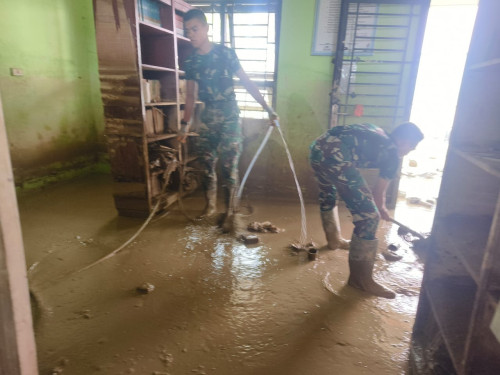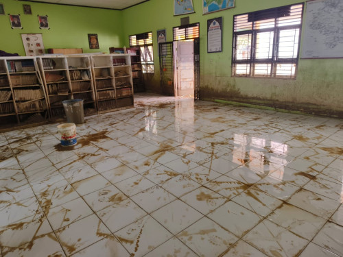 teras, serta ruangan-ruangan kelas yang terdampak banjir. Upaya tersebut