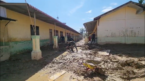 Kegiatan pembersihan tersebut difokuskan pada pengangkatan lumpur yang menutupi halaman sekolah serta pembersihan ruang-ruang kelas yang terdampak banjir. Para Taruna bekerja secara gotong royong membersihkan sisa material banjir guna mengembalikan fungsi sarana pendidikan agar dapat digunakan kembali.