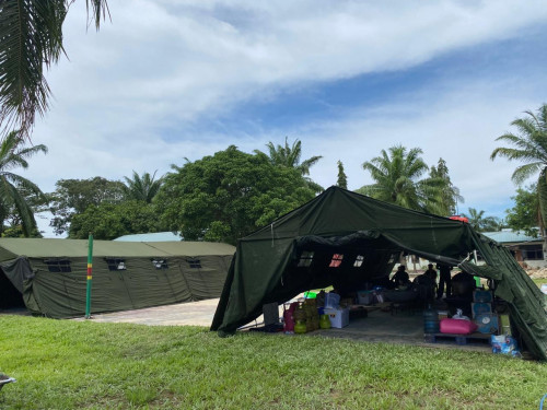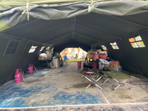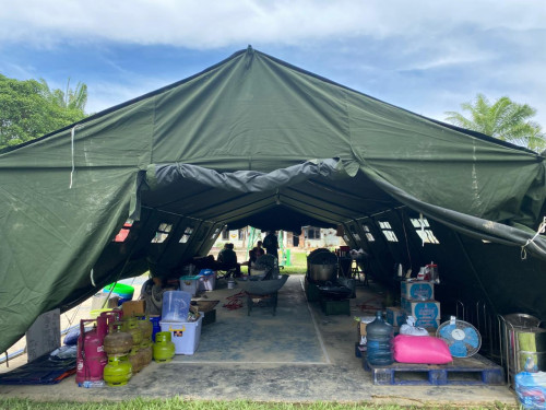 Dapur lapangan tersebut disiapkan untuk mendukung penyediaan kebutuhan makan bagi seluruh kontingen Satgas selama pelaksanaan kegiatan. Fasilitas ini dirancang agar mampu menunjang kelancaran operasional, sekaligus memastikan pemenuhan kebutuhan logistik personel secara tepat waktu dan terkoordinasi.