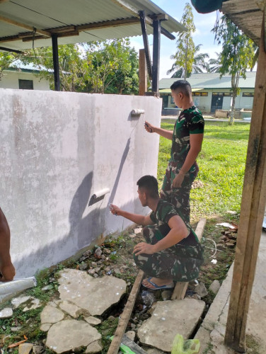Taruna Akademi TNI kembali pengecetan Kamar Mandi dan Barak di Mayonif 111/KB