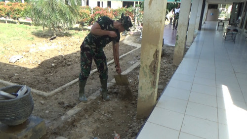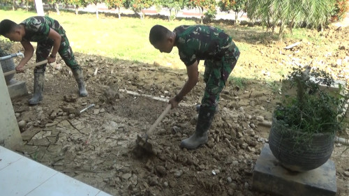 Taruna Akademi TNI pembersihan taman belakang Mayonif 111/KB